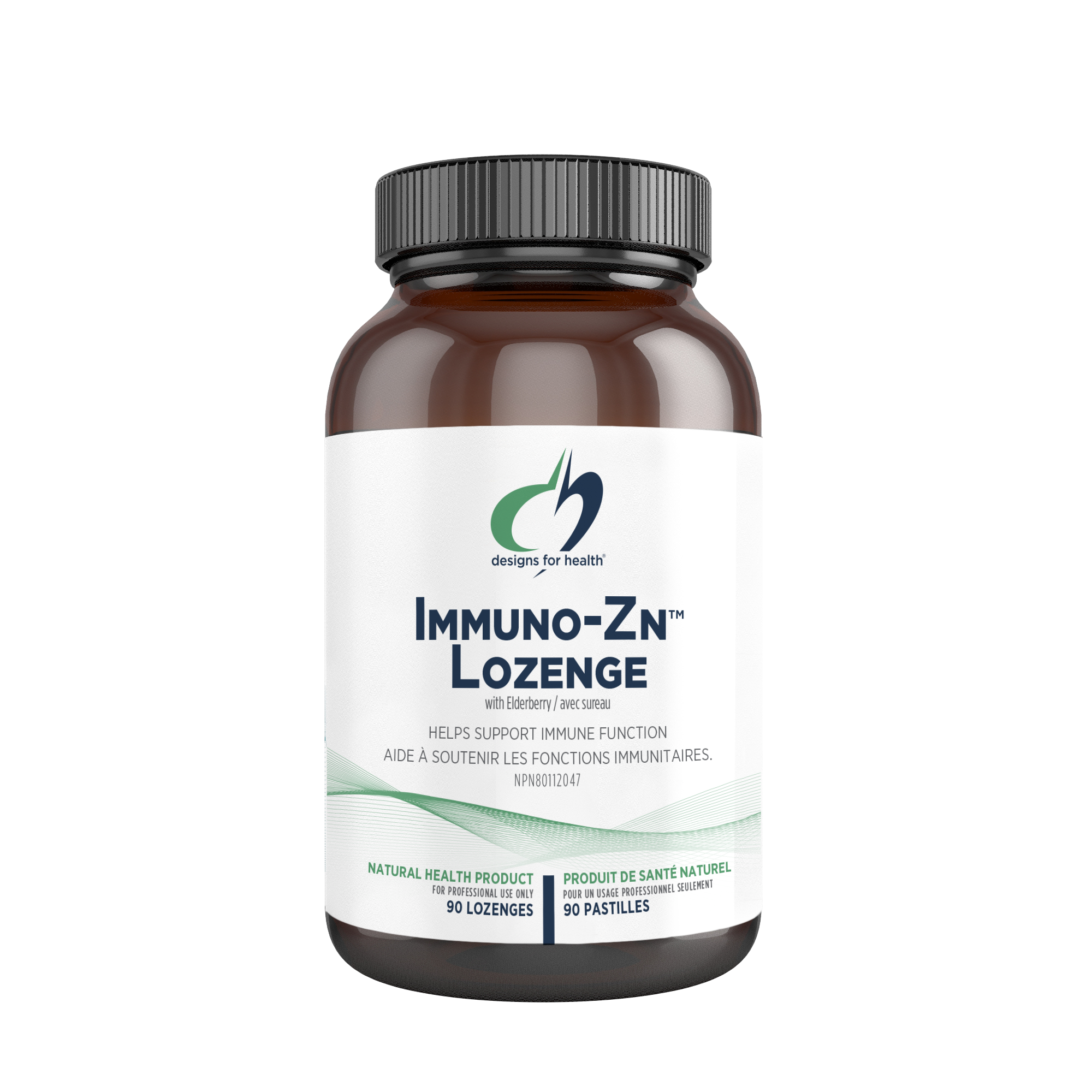 La pastille Immuno-Zn™ est une combinaison de zinc et de sureau livrée dans une pastille à fusion rapide avec une délicieuse saveur de baies mélangées pour soutenir la santé immunitaire globale. Chaque pastille fournit 25 mg de zinc (sous forme de gluconate de zinc combiné avec du citrate de zinc) et 100 mg de fruit de sureau (Sambucus nigra), et elle ne contient aucun gramme de sucre. Le système de distribution de pastilles est idéal pour une absorption ciblée et peut aider à soutenir la santé du tractus gastro-intestinal supérieur (c'est-à-dire la gorge) et des voies respiratoires supérieures.