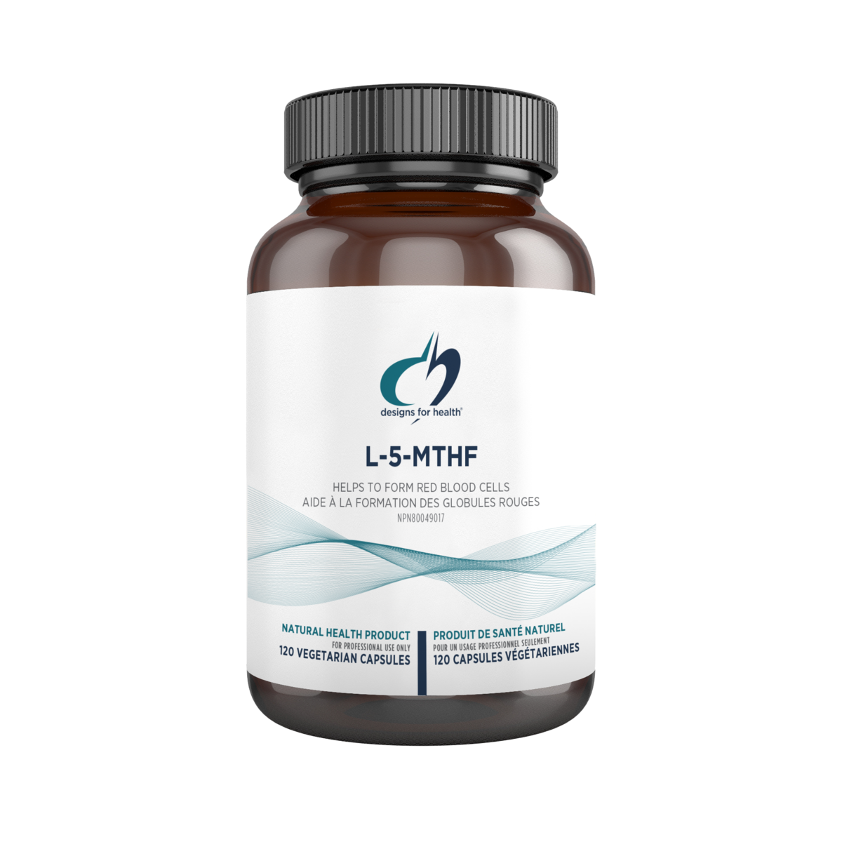 Le L-5-MTHF fournit du folate sous une forme bio-identique et bioactive, le 5-méthyltétrahydrofolate. Le L-5-MTHF (le « L » signifiant qu’il s’agit de l’isomère entièrement naturel [6S]) est la forme circulante active du folate présente dans l’organisme et l’une des nombreuses formes présentes dans les aliments. Dans la nature, il ne se trouve que sous la forme de cet isomère [6S]; c’est pourquoi DFH fournit du 5-MTHF sous cette forme naturelle plutôt que sous forme mixte (ou racémique). Le L-5-MTHF a été conçu pour les patients ayant démontré un besoin accru en folate, tels que ceux présentant les mutations A1298C ou C677T MTHFR.